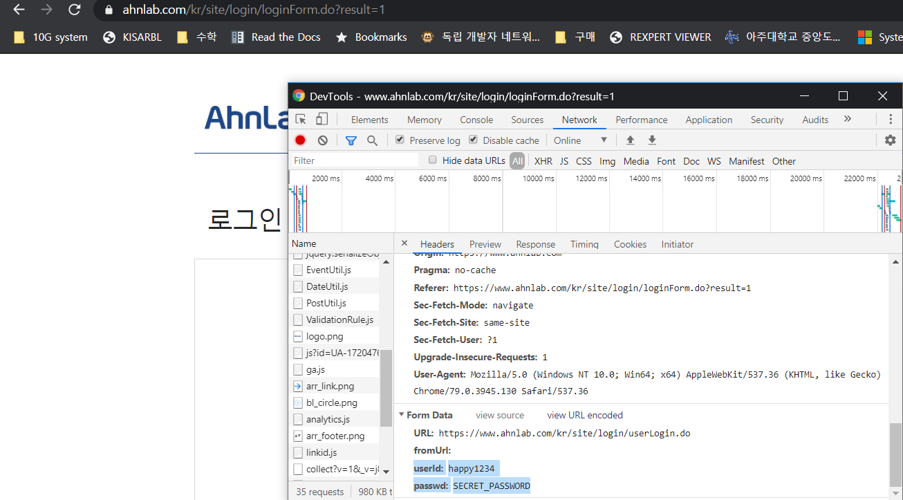 1. 국내 유명 주요 보안 업체인 Axxxxx의 정상 로그인 테스트