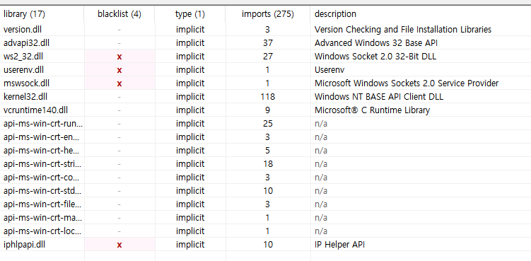 가짜 static 임.... static link 이면 api-ms 없어야 할텐데...